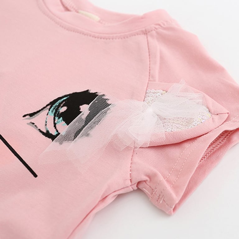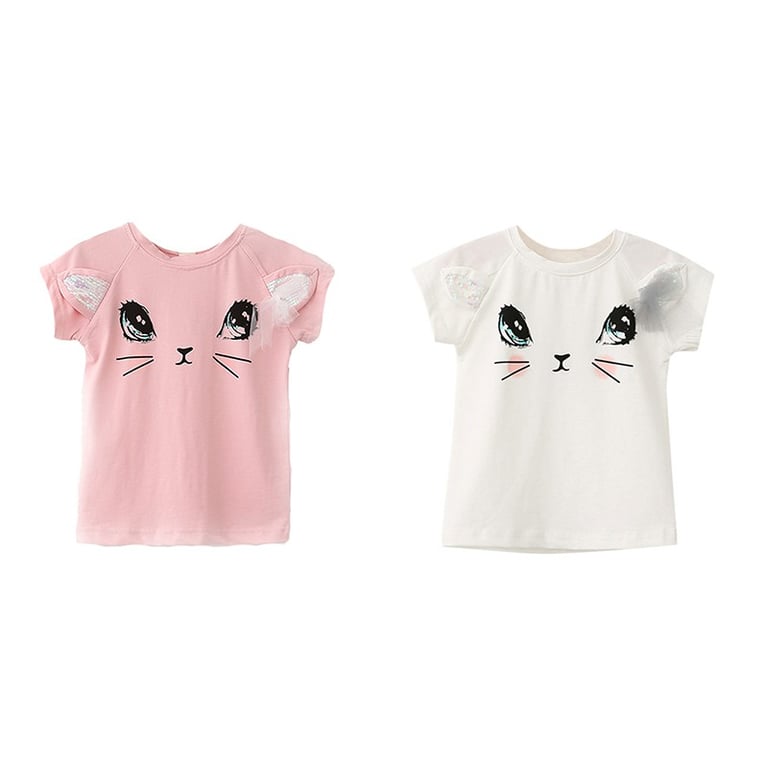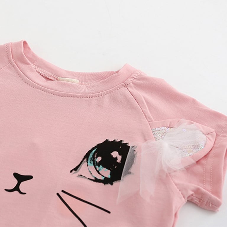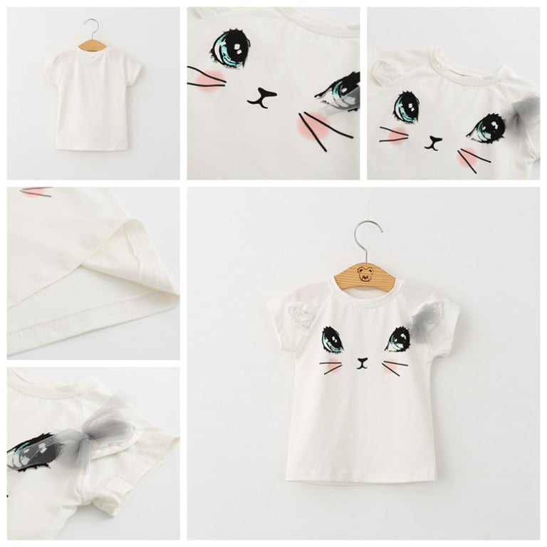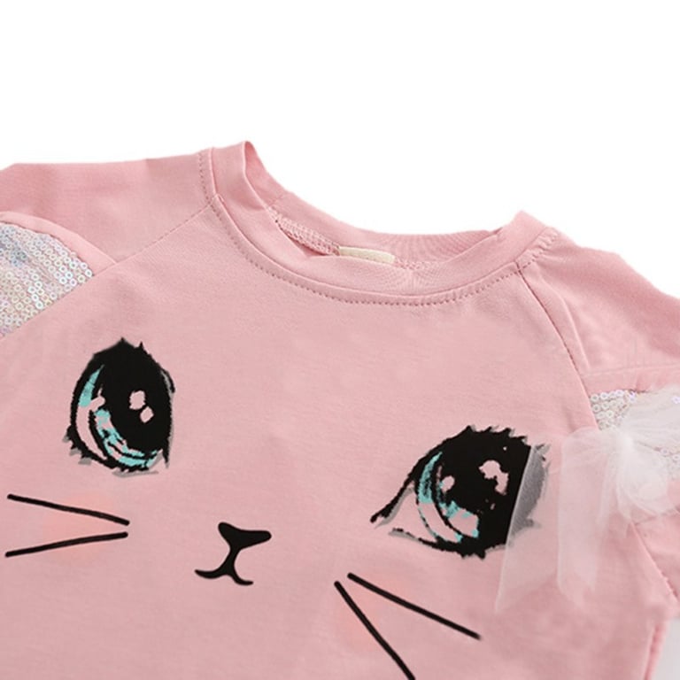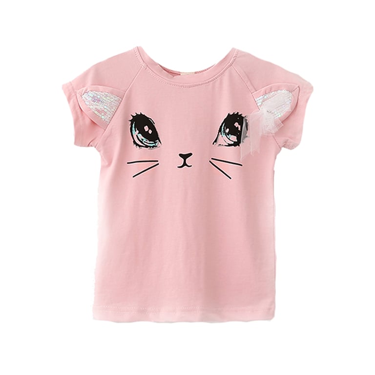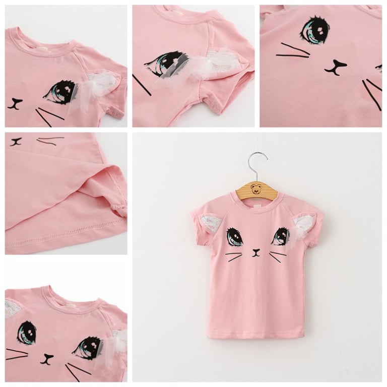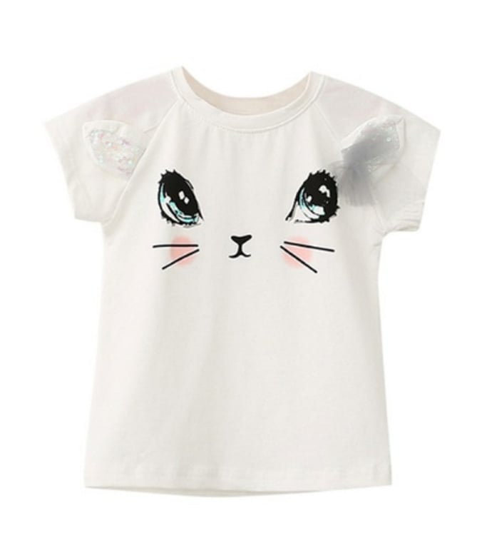 Beautiful girls' t-shirt with a printed kitten and bow.