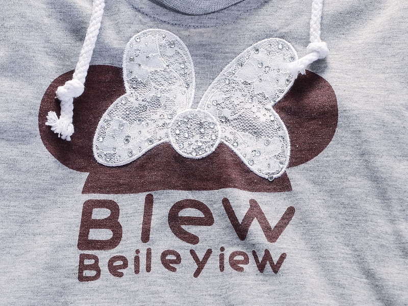 A beautiful print of a bow and text stands out on the front.