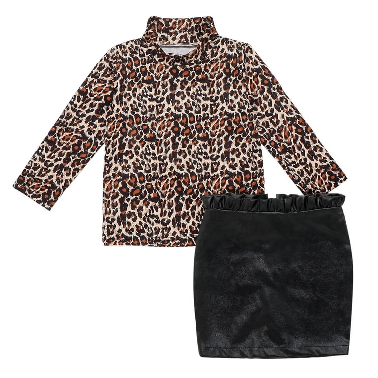 Girls' Roll Neck and Leather Skirt