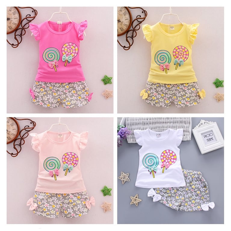 Girls' Two-Piece Set with Cute Lollipop Print