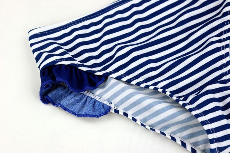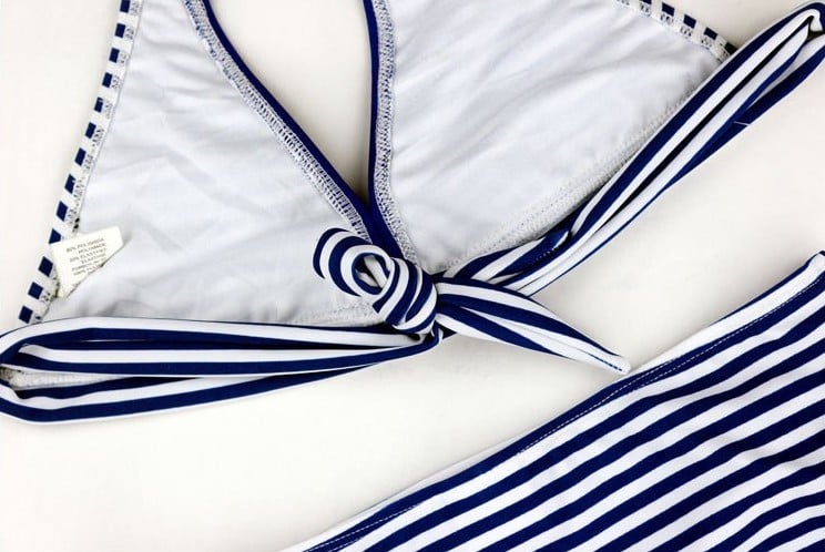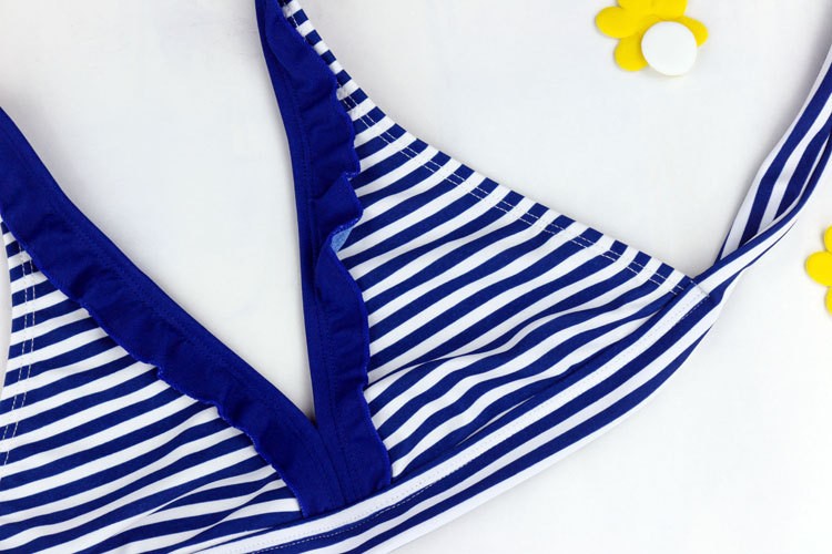 Beautiful two-piece swimsuit with a striped pattern is a great choice for any young lady!