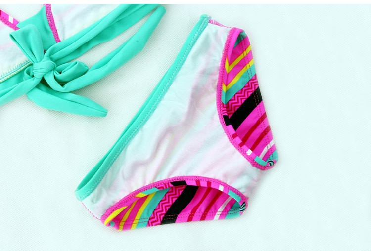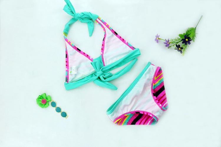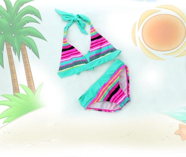 Beautiful two-piece swimsuit with an interesting pattern is made for every young lady.