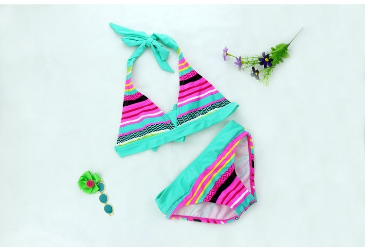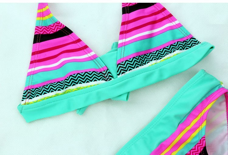 Beautiful two-piece swimwear with an interesting pattern is just perfect for every young lady.