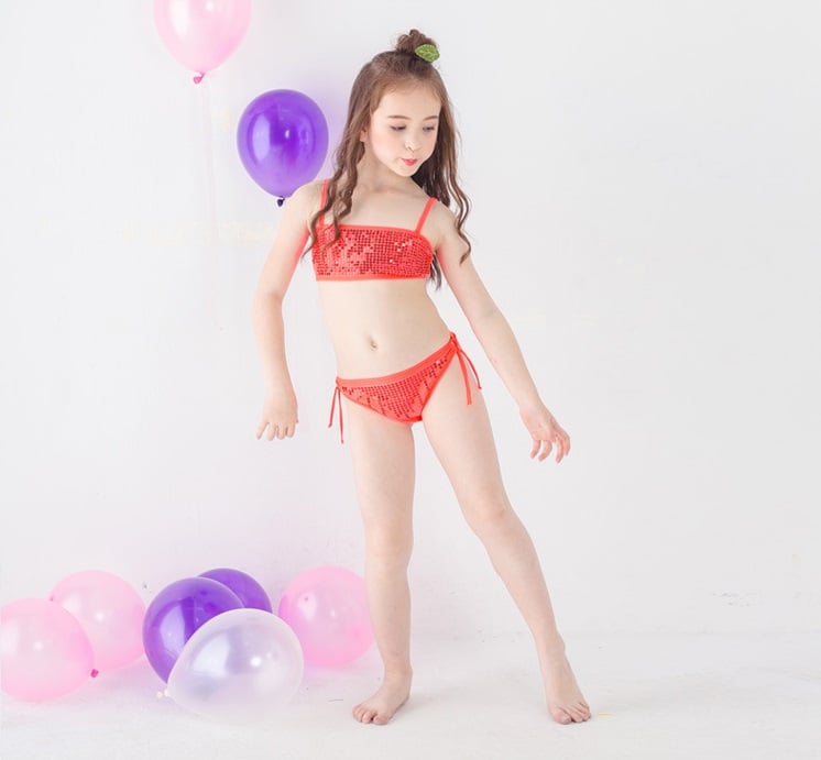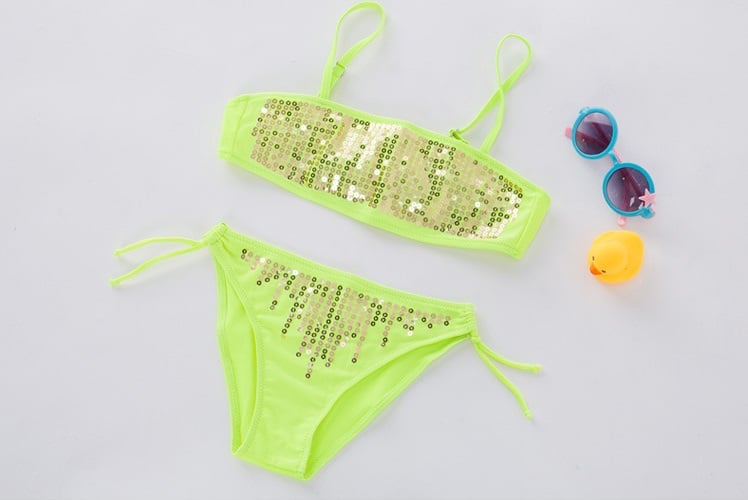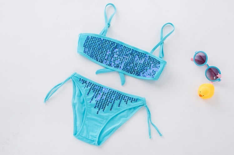 Girls' two-piece swimsuit with sequins – 4 colours
