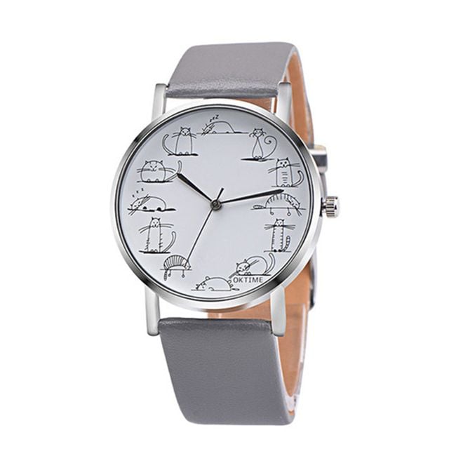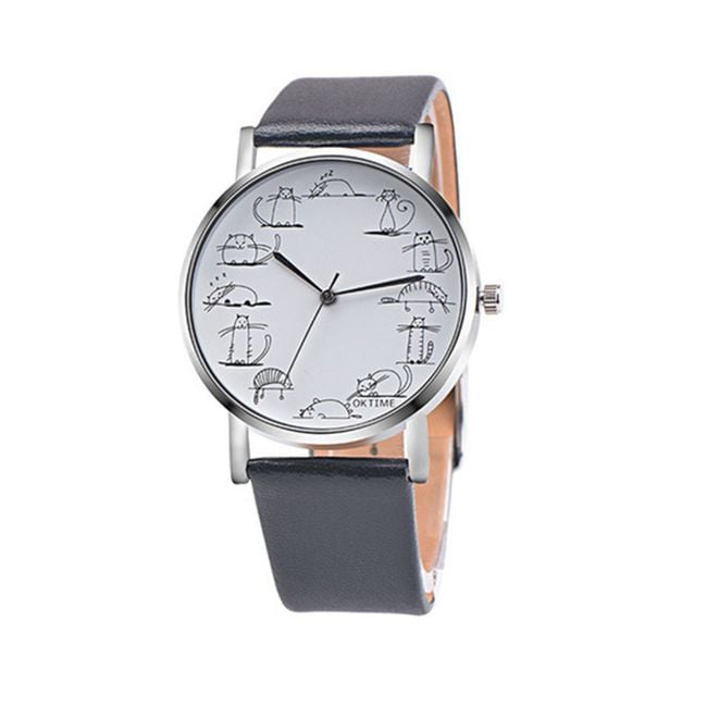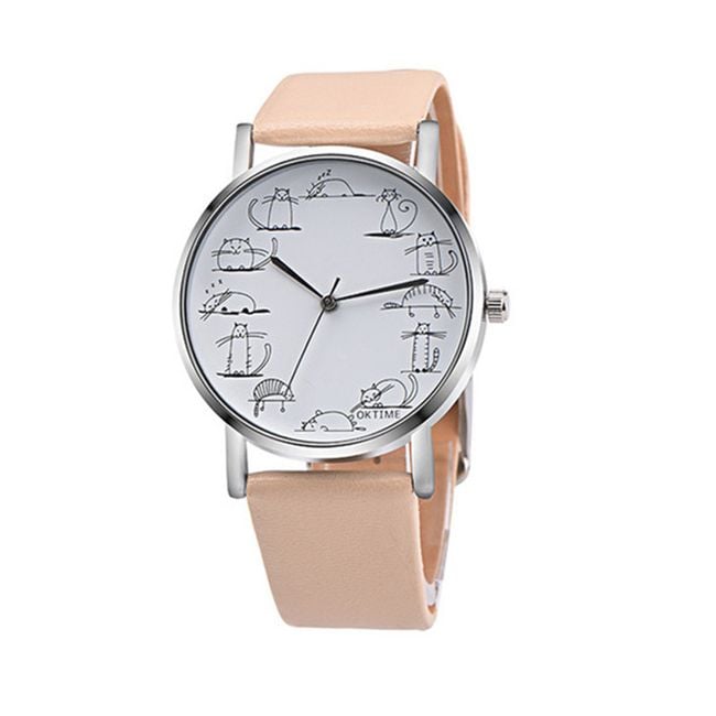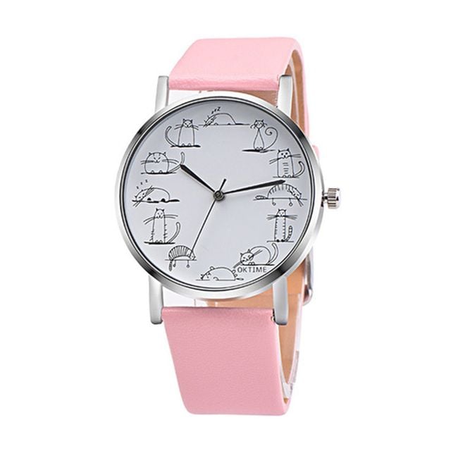 The dial of these girls' watches is decorated with kittens instead of numbers. You can choose from several colours.