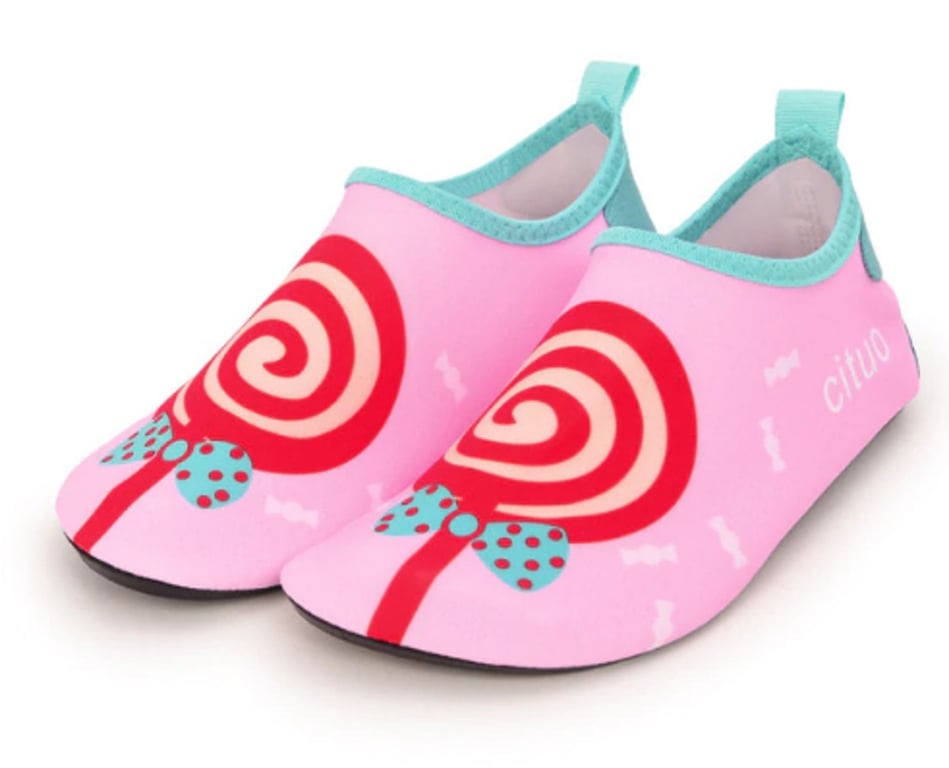 Your little girls will surely love these water shoes decorated with a spiral and a bow.