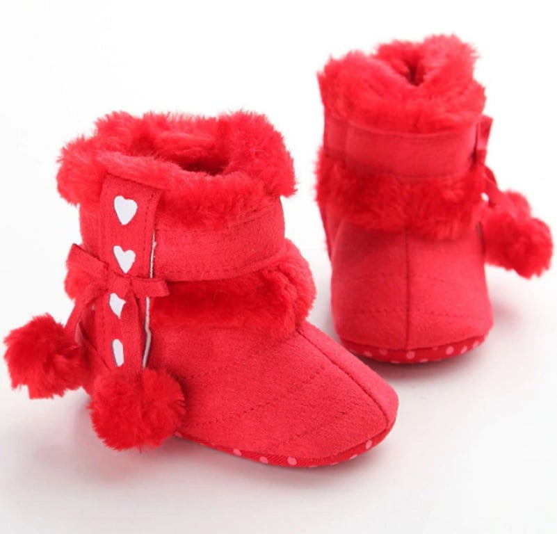 These girls' winter booties adorned with pom-poms are perfect for cold weather. The booties will definitely keep your little one warm!