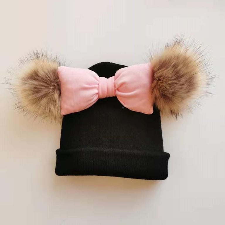 Girls' winter hat with pom-poms