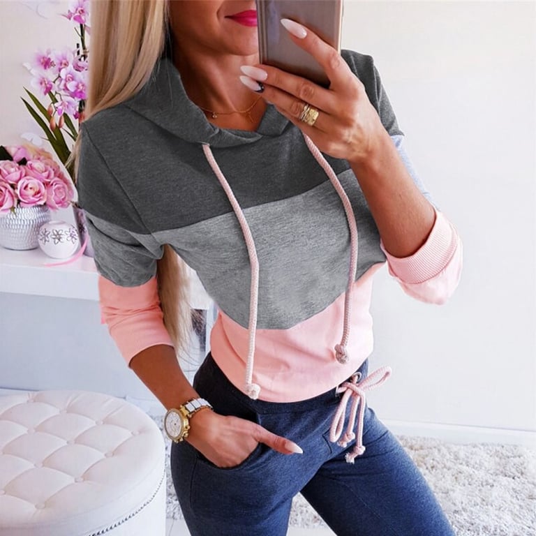 Women's pullover hoodie. With a hood and long drawstrings. Elastic waistband. Long sleeves. Colourful striped pattern. Available in two variants.