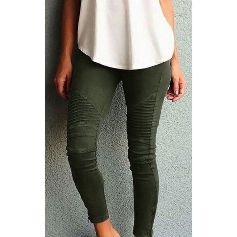 Women's high-waisted leggings with an elastic waistband. Stretchy with decorative stitching and zippers at the ankles. Available in multiple colour options.