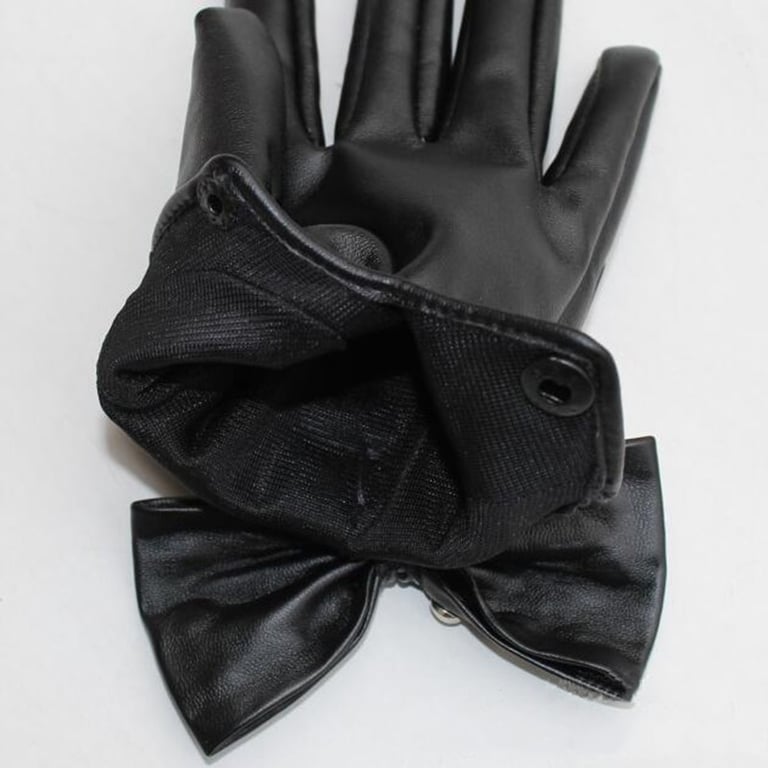 Very stylish women's gloves made of artificial leather, adorned with a large bow and studs.