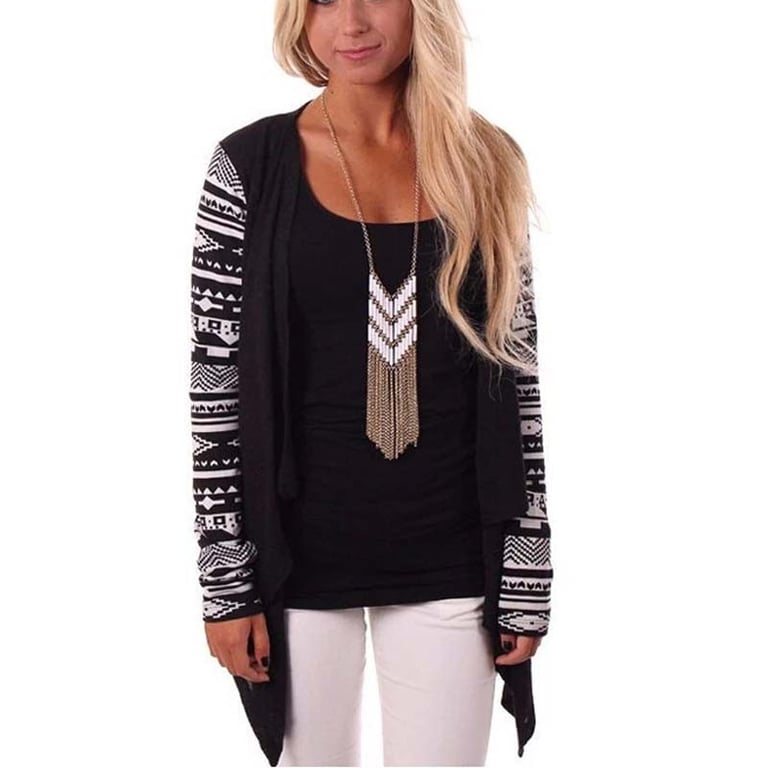 Stylish women's cardigan that will make you look great and is perfect for spring and summer! The beautiful patterned sleeves perfectly complement the overall outfit.
