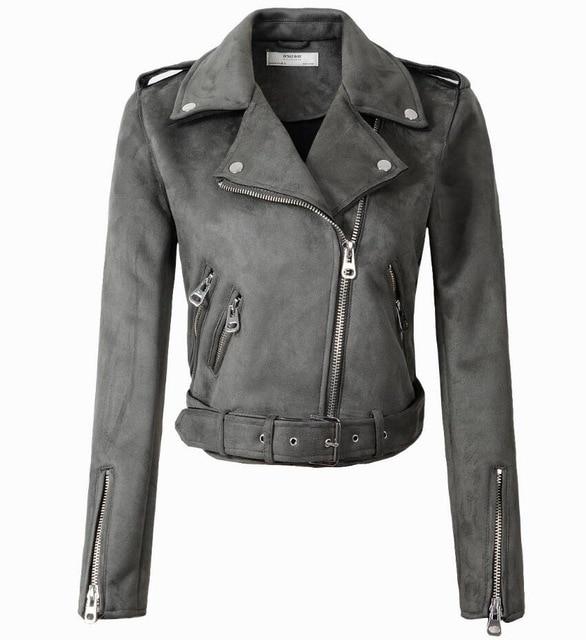Classic women's faux leather jacket with a belt and pockets for everyday wear.