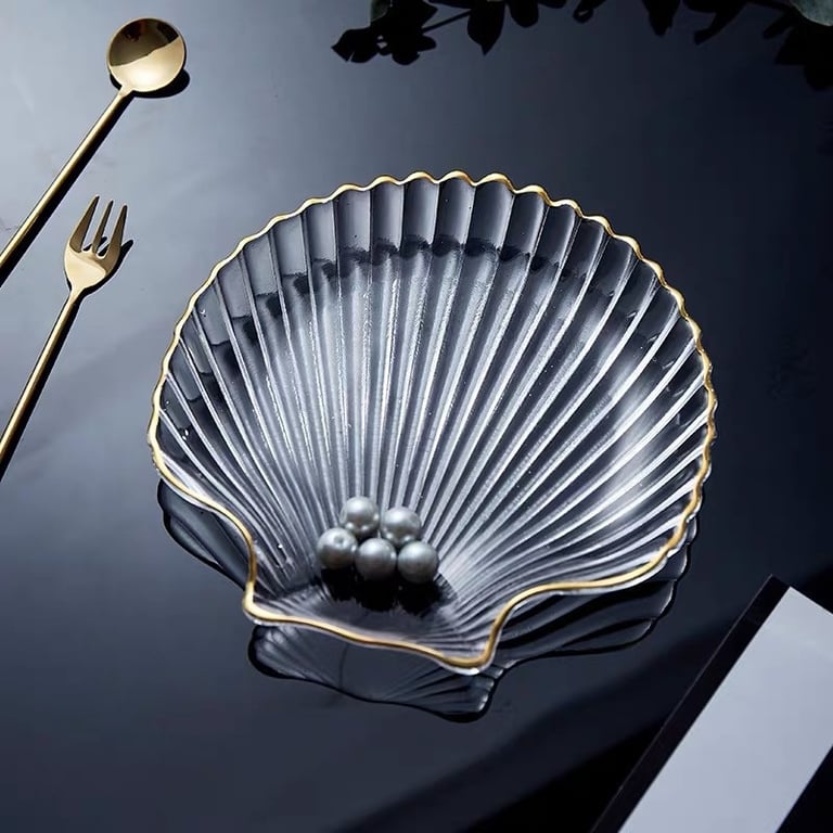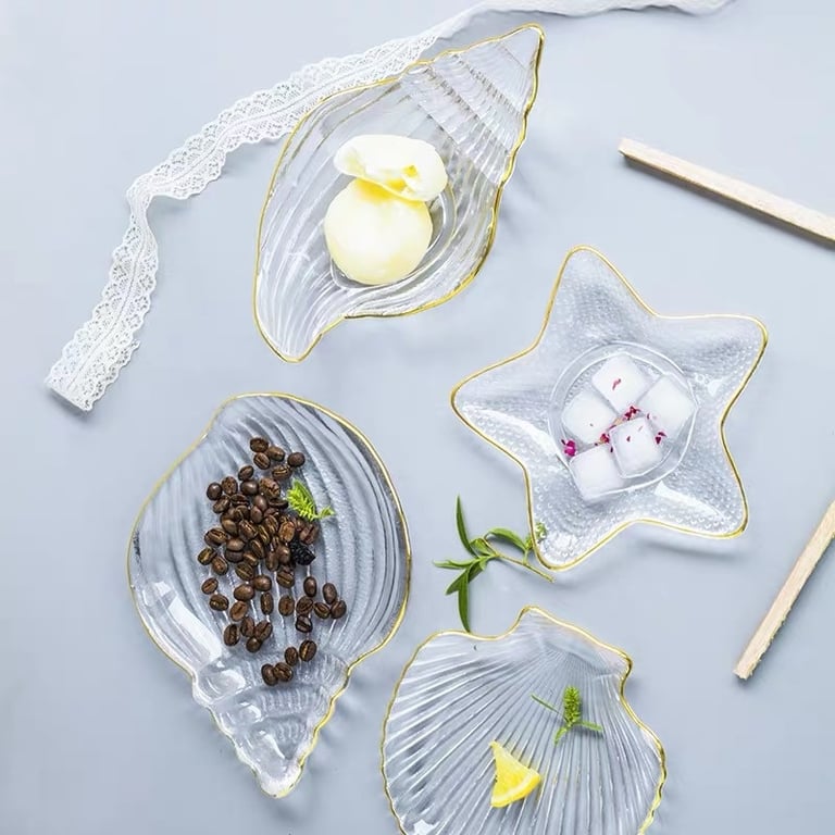 Beautiful and elegant glass plates for small items with marine motifs. The plates have a gold rim. They are suitable for storing jewellery, keys, coins, or even soap.