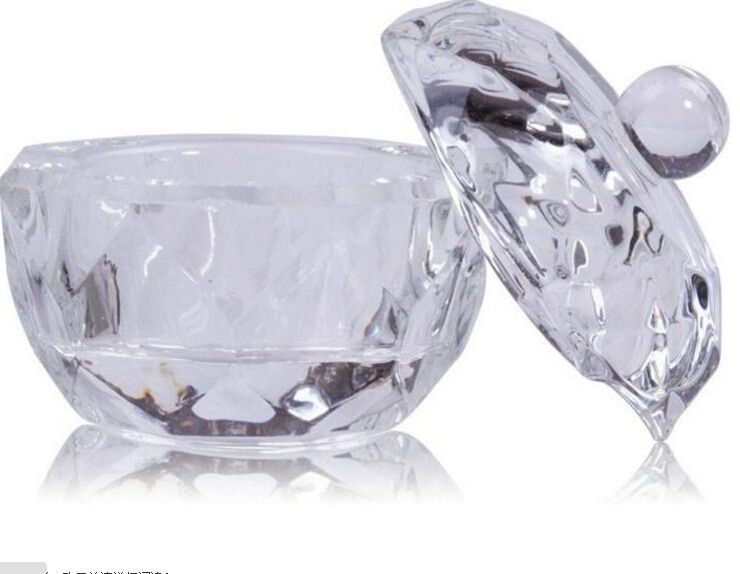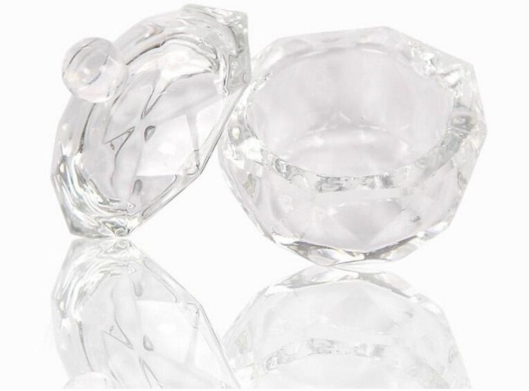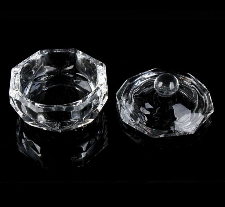A practical and stylish glass container for acrylic for artificial nails.