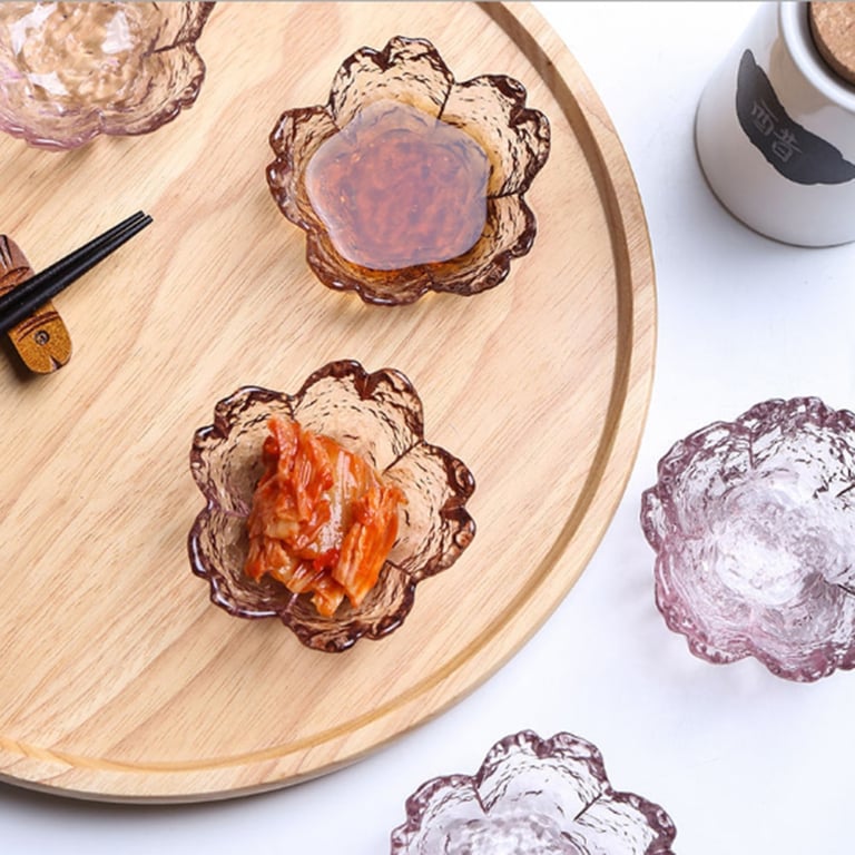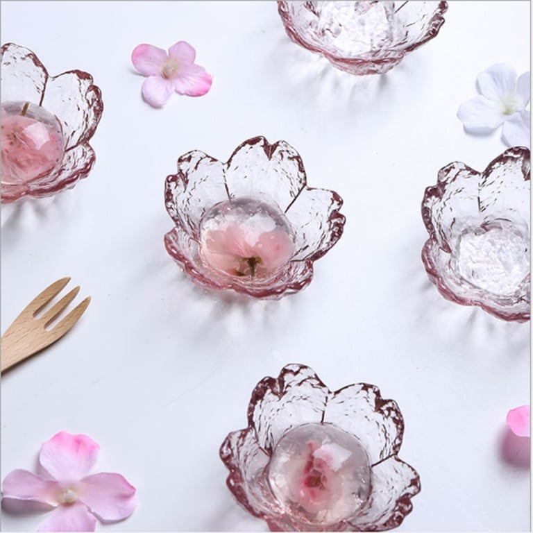 Beautiful glass bowls in the shape of flowers are perfect for desserts, sauces, fruit, or yogurt. The bowls are handmade and will delight everyone. Suitable as a gift.