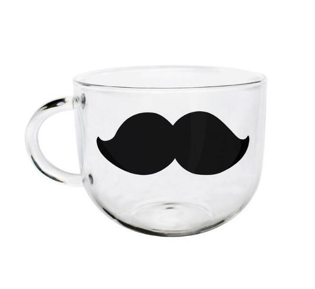 Beautiful glass original mug with a picture of a beard. Ideal as a gift.
