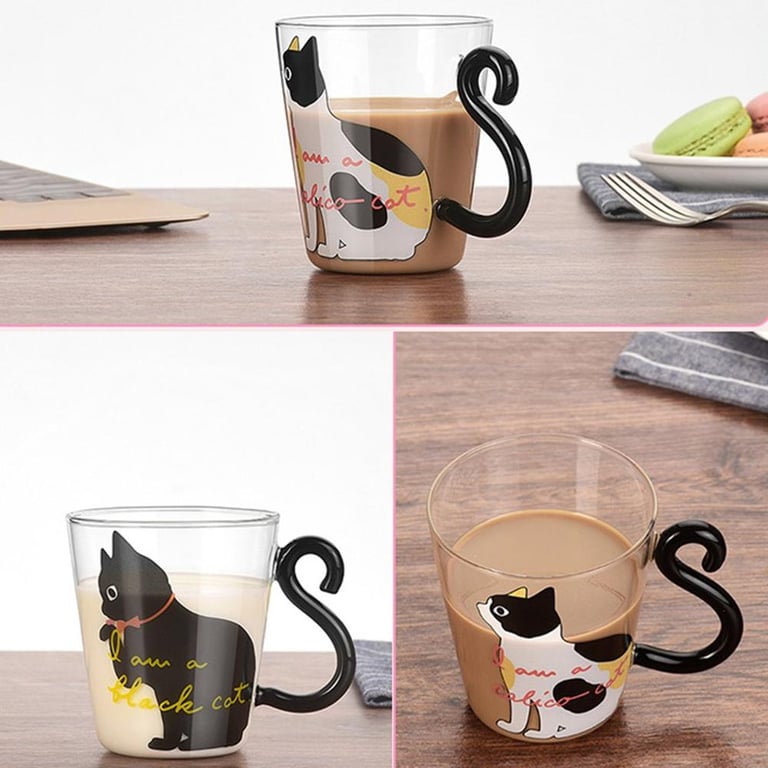 Glass Mug with Cat Design