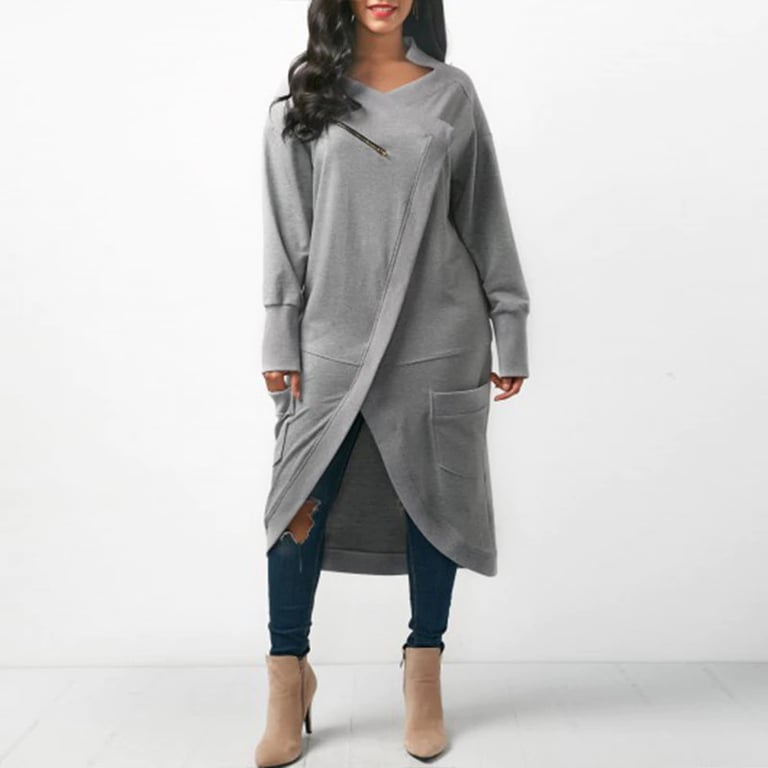 GleamMuse™ Women's Plus Size Long Hoodie Towanda – Grey