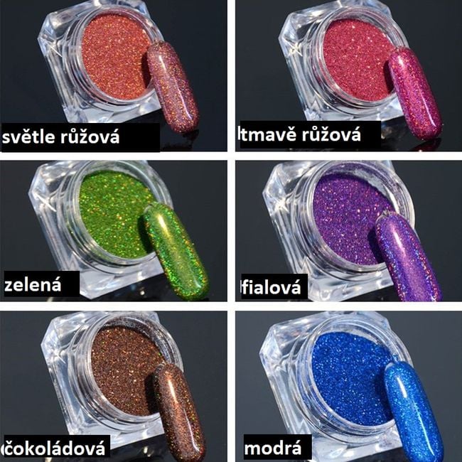 These glitter particles beautifully decorate artificial nails. First, apply gel to the nails, then use a brush or eyeshadow applicator to apply the glitter as desired, and then cover with another layer of gel. Thanks to the glitter, the nails will shine beautifully in daylight. Available in 6 colour variations.