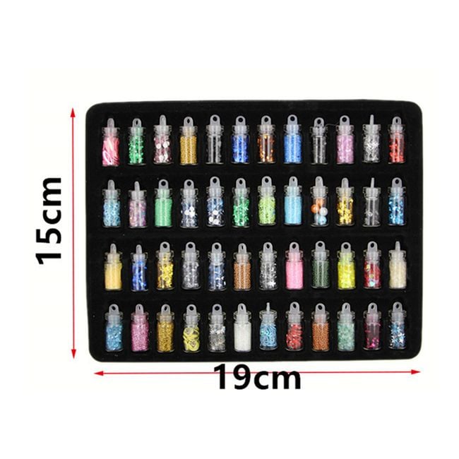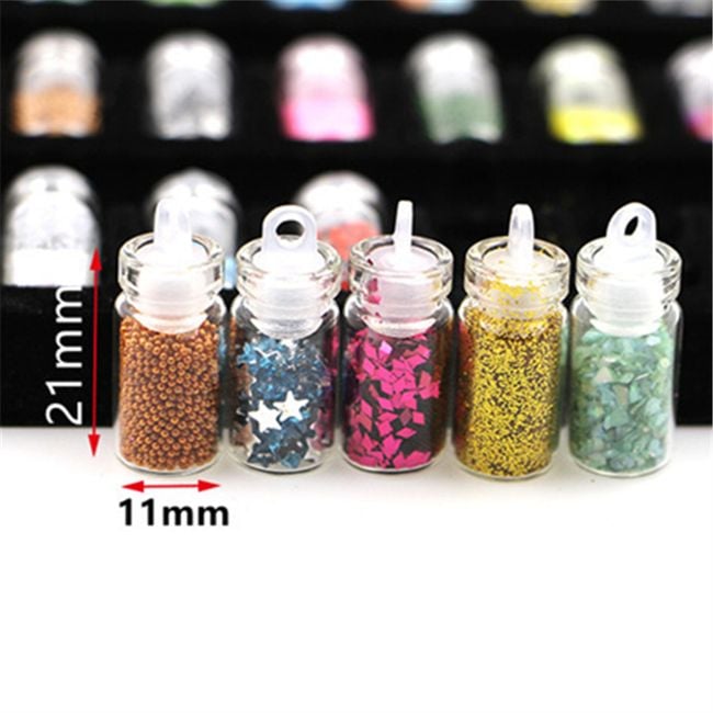 Set of bottles with various glitters and sparkles for nails.