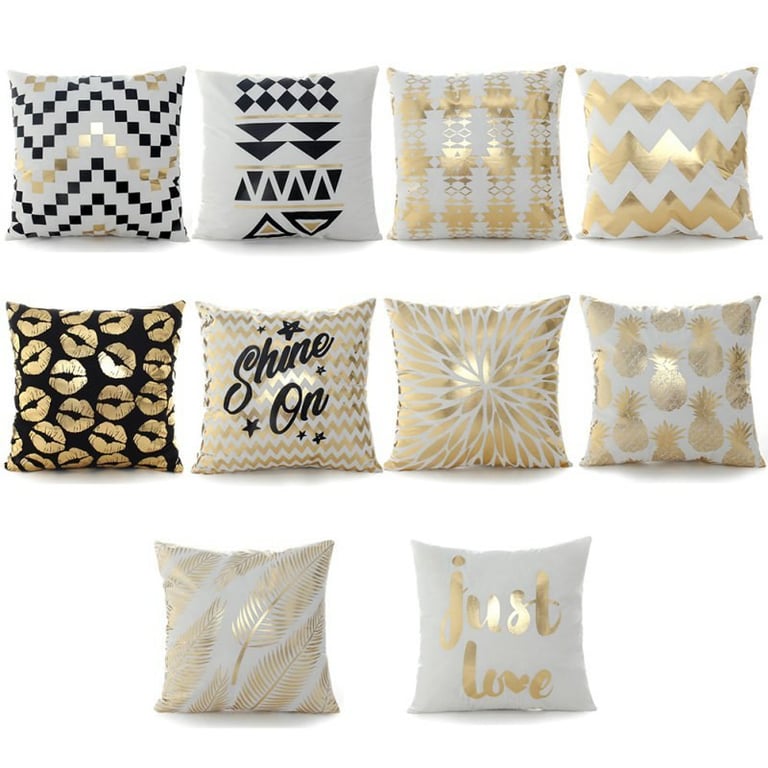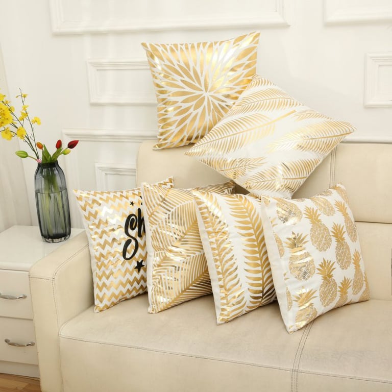 Decorative cushion cover with a gold geometric print. Available in various options.