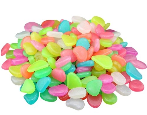 Simply expose the pebbles to daylight, and they will create a colourful glow at night.