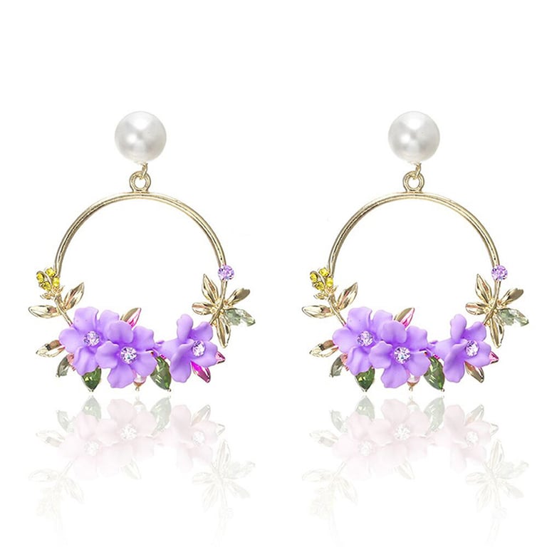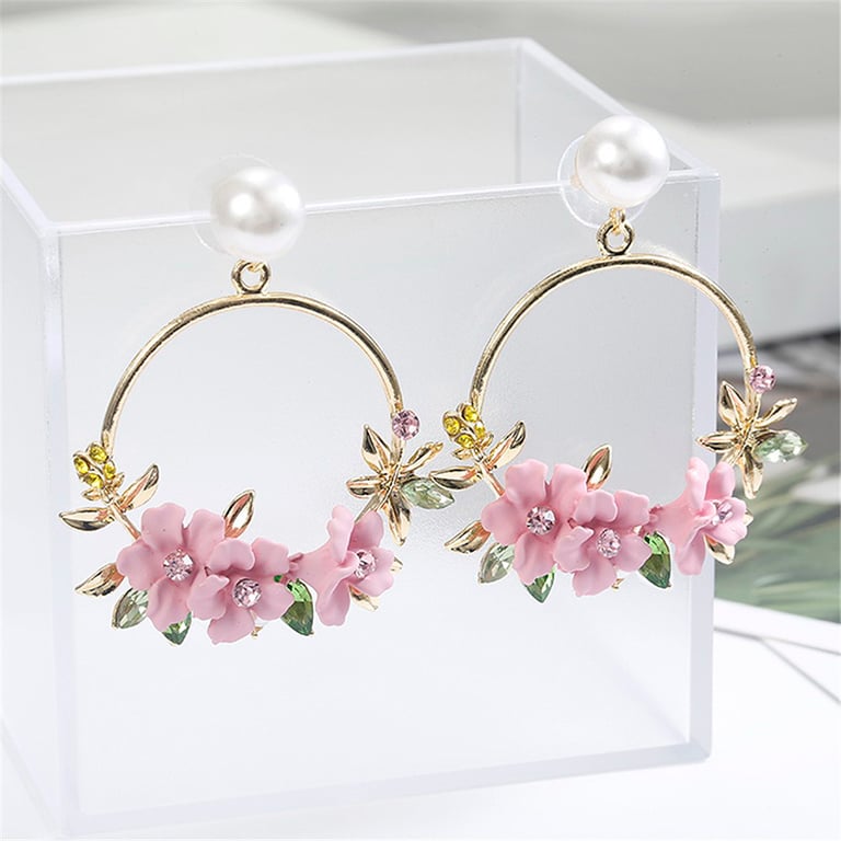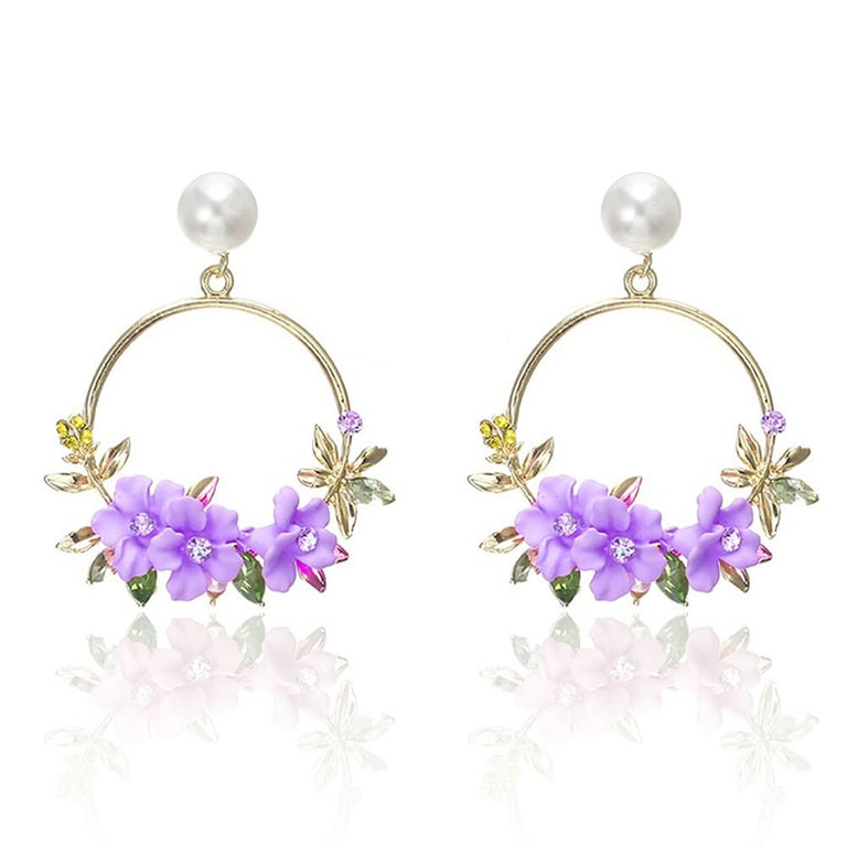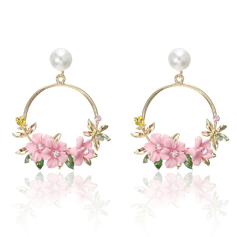 Gold Drop Earrings with Floral Spring Motif