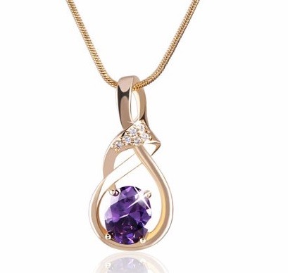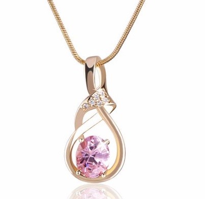 Women's necklace with a zircon stone serves as a beautiful accessory for a woman's everyday outfit.