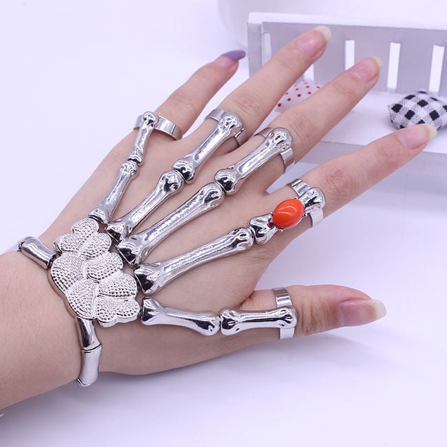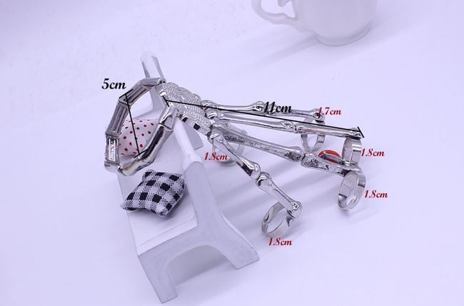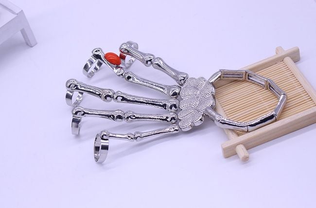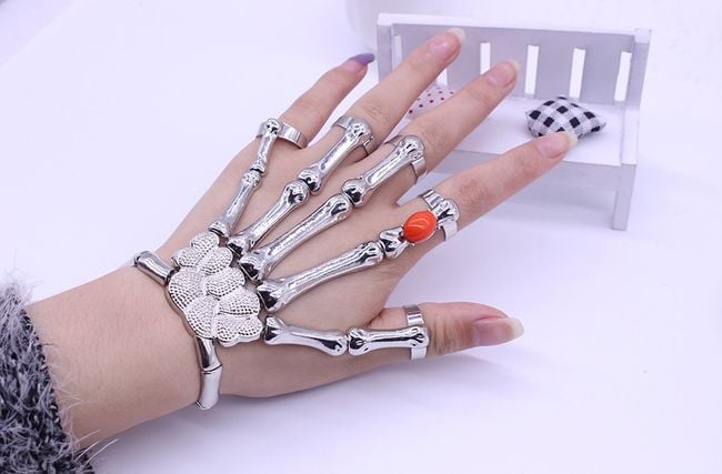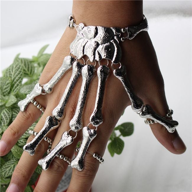 Every true rebel will appreciate these extraordinary gothic bracelets in the shape of a skeletal hand. They are best used at a super festival to complement a stylish outfit. The bracelets have adjustable finger hole sizes. Don’t hesitate and be original with this fantastic accessory. The package contains two different pieces, which can be viewed in the image gallery.