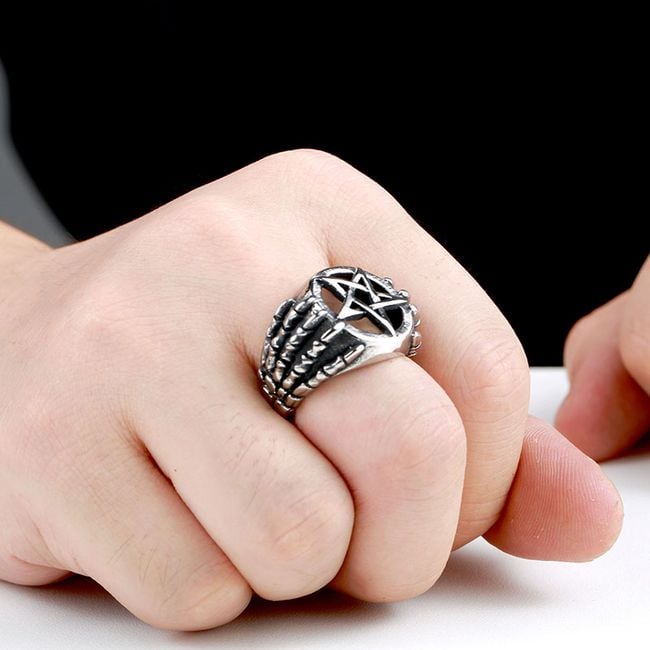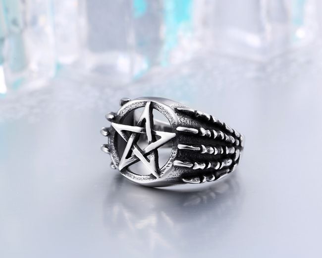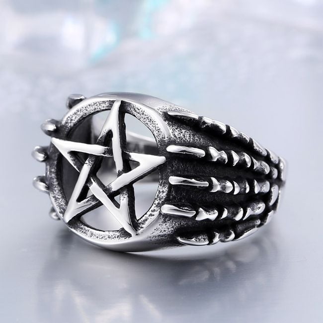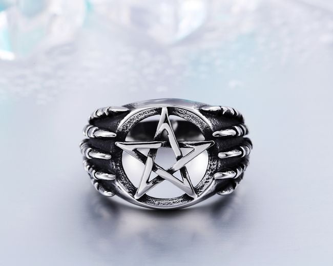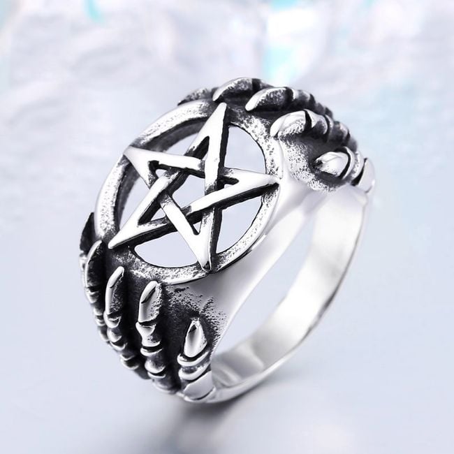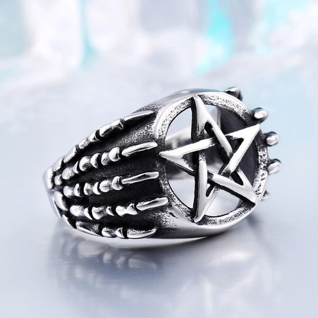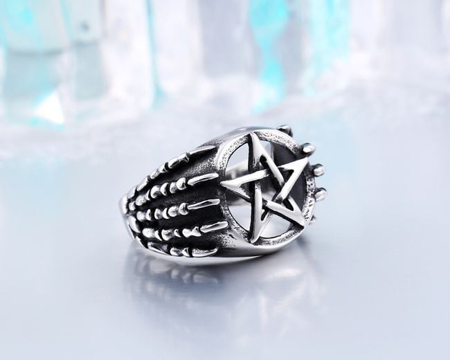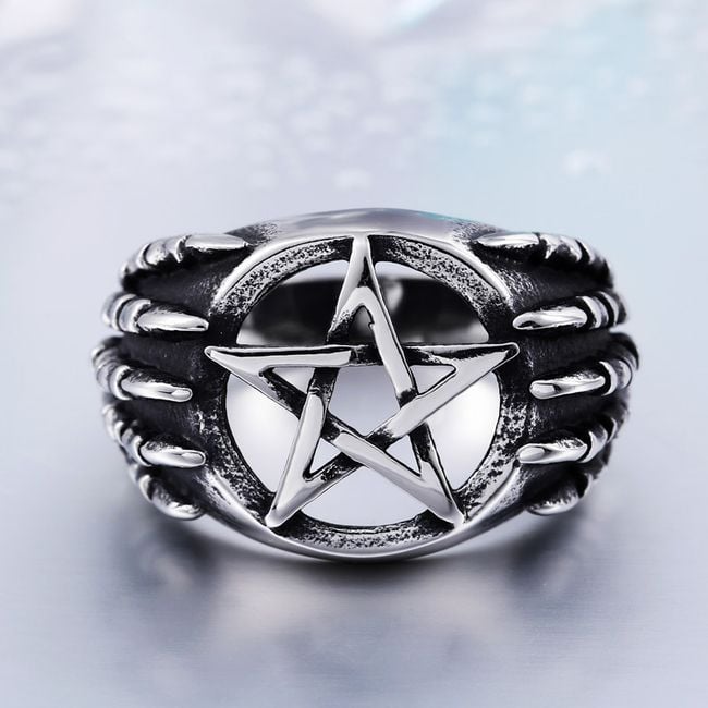 The wider ring is adorned with a five-pointed star and claws. You can choose from several sizes.