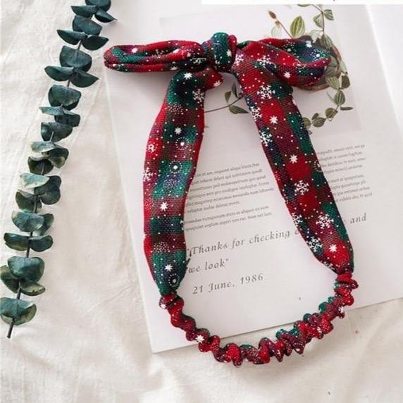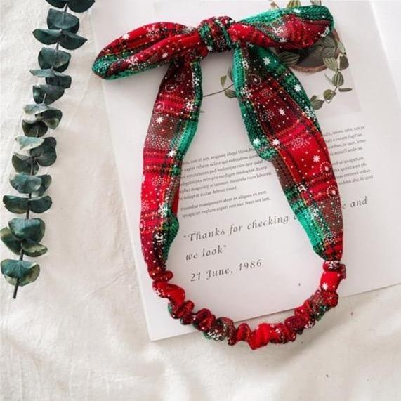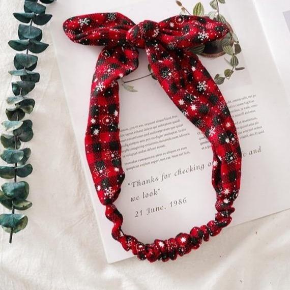 Women's Christmas hairband with a bow. Several Christmas patterns are available to choose from.