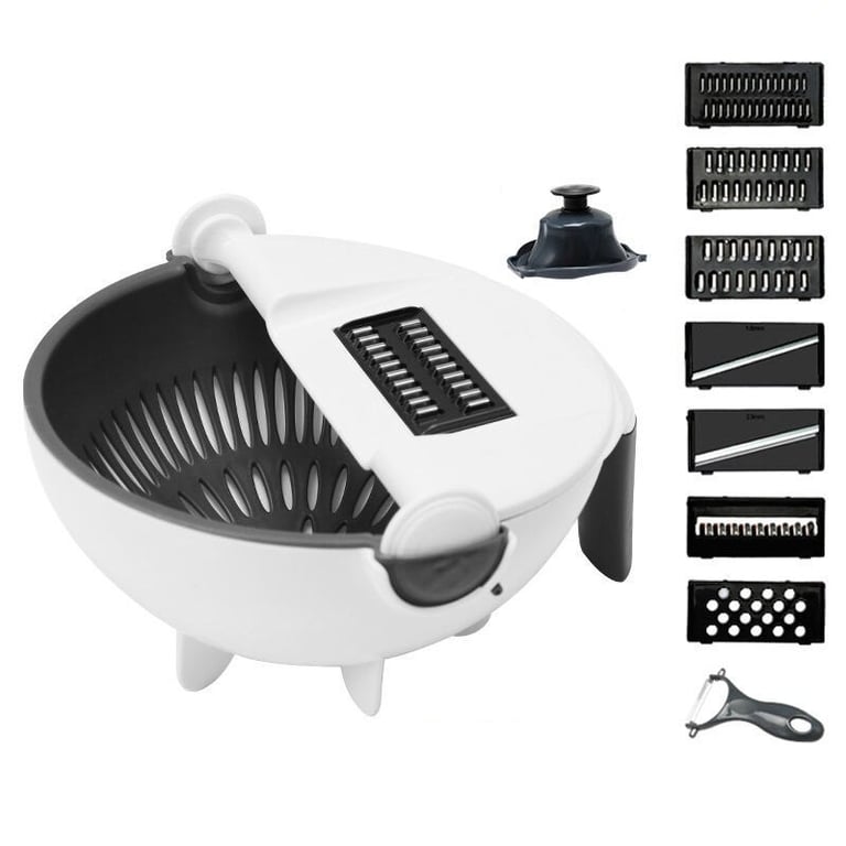 Package contents: 1x grater with container, 7x interchangeable blade, 1x protective cap, 1x peeler