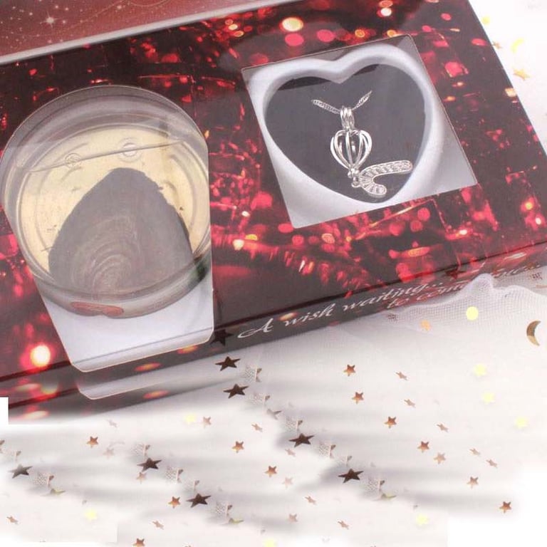 A completely perfect gift for a woman, girl, or young lady. Inside the themed box, there is a piece of jewellery designed in the shape of a lattice. Next to it is a pearl, which the woman can take out of the shell and place into the accompanying jewellery, allowing her to adorn herself at any time.