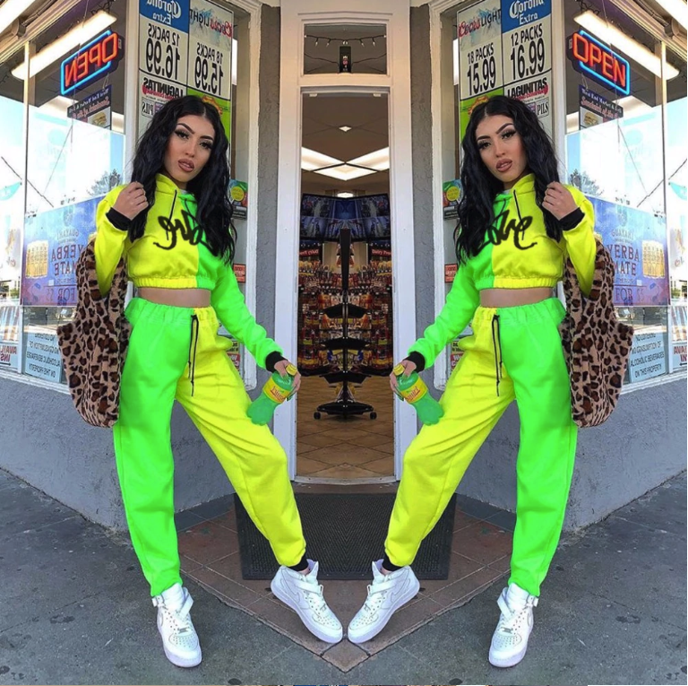 Green and yellow stylish women's tracksuit