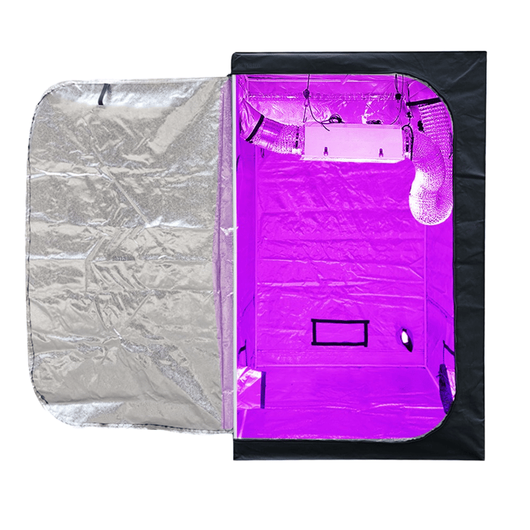 This grow box is made from high-quality materials. It features several openings, making it ideal for placing fans and filters. The structure is made of sturdy metal, allowing it to support 100 kg. Included are double zippers that prevent light leakage. The outer material is Oxford fabric and the inner material is Mylar film, creating the perfect environment for your plants.