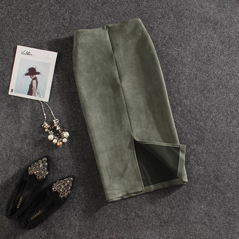 Women's pencil skirt with a high waist. The skirt features a zip fastening and a subtle slit at the back. Available in many colour options.