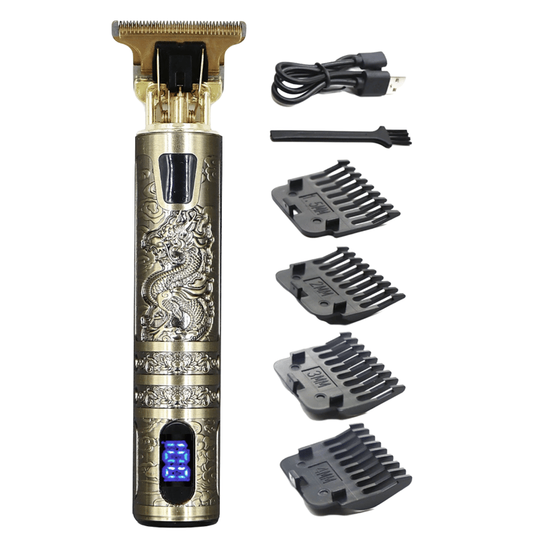 Package contents: 1x trimmer, 1x USB charging cable, 4x attachments, 1x cleaning brush
