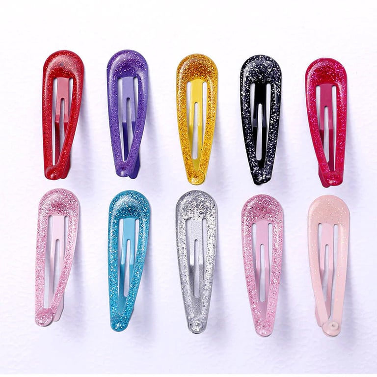 Hair clips for children, girls, and ladies. In the package, you will receive 10 pairs of metal clips measuring 5 cm in random colours.