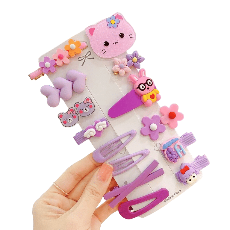 These charming hair clips will help keep hair neat and out of the face. The pack contains 14 pieces in various designs, each one cuter than the last. Whether your little girl is getting ready for a party or just for school, these hair clips are the perfect accessory.