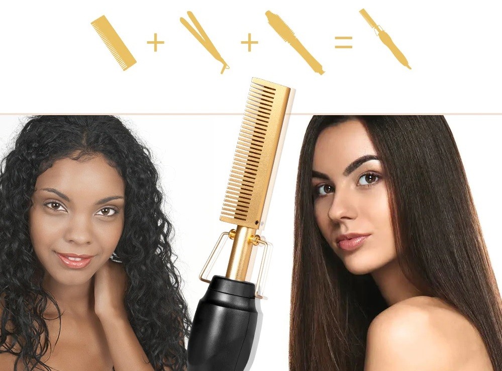 Hair straightening brush with ceramic technology. Leaves hair shiny and frizz-free when straightening. The heated comb can be set to different temperatures. It is lightweight, comfortable to hold, and easy to use. It is ideal for straightening curly hair. Heats up quickly.