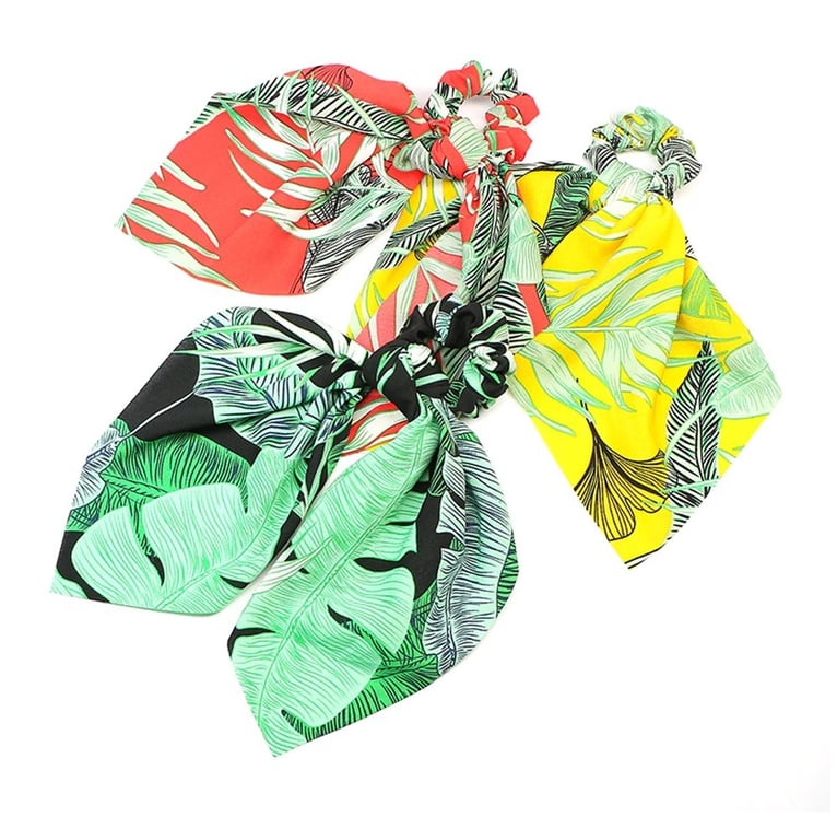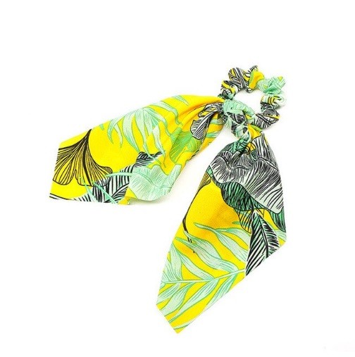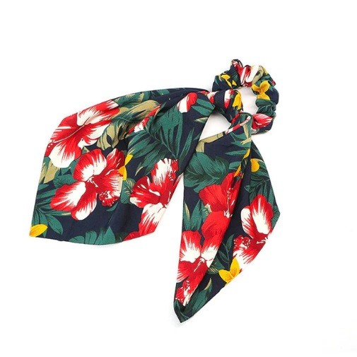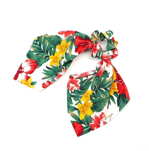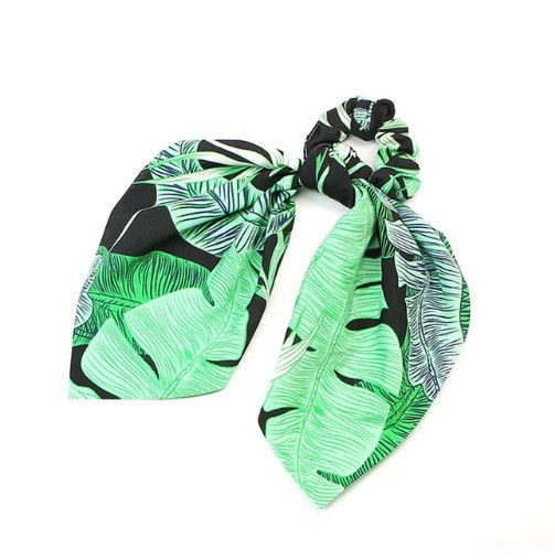 The hair tie is similar to a scarf and features beautiful tropical patterns.