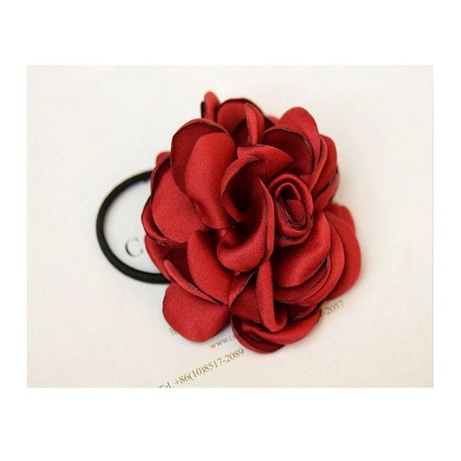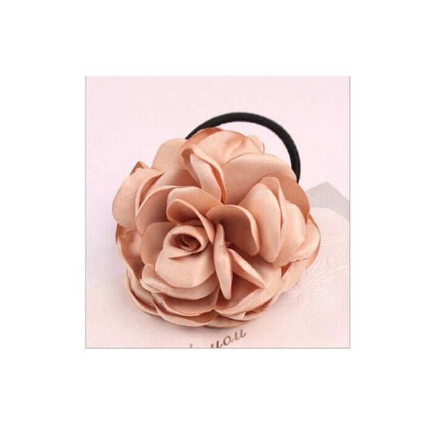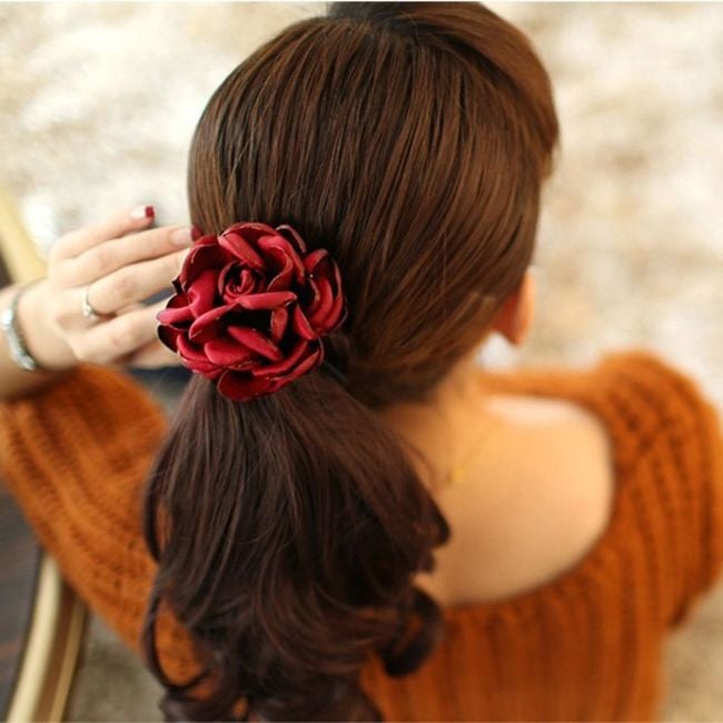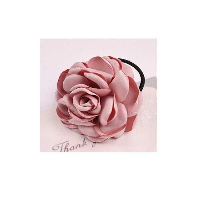 The hair tie is adorned with a beautiful rose and is available in four variants.