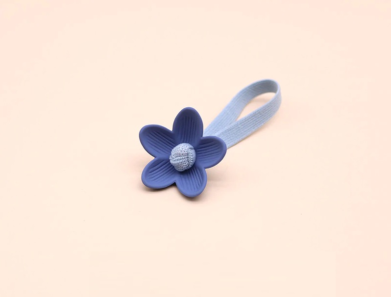 The hair tie is adorned with a flower that looks adorable in the hair.