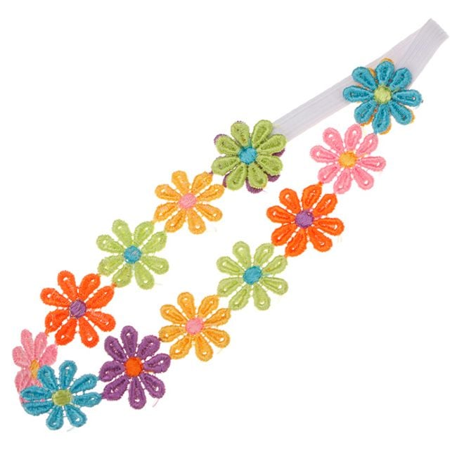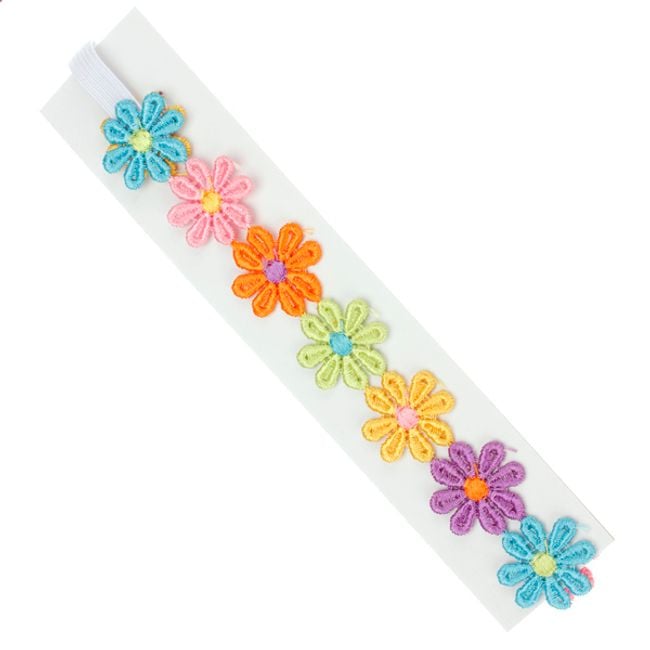 Hairband for girls who love to accessorise. The elastic band easily adapts to the shape of your child's head. The colourful flowers can be matched with any type of clothing.