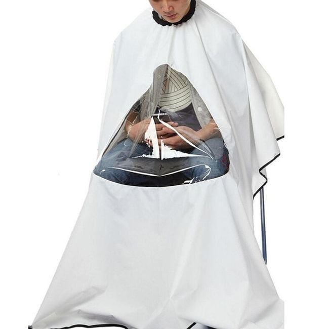 Original hairdressing cape with a transparent opening is available in 5 colours.
