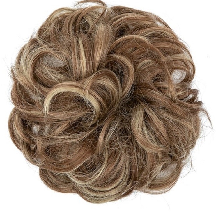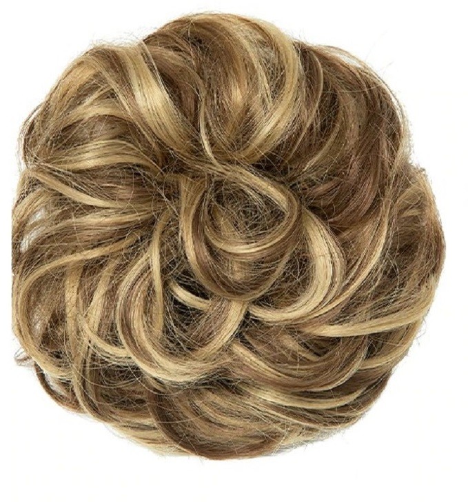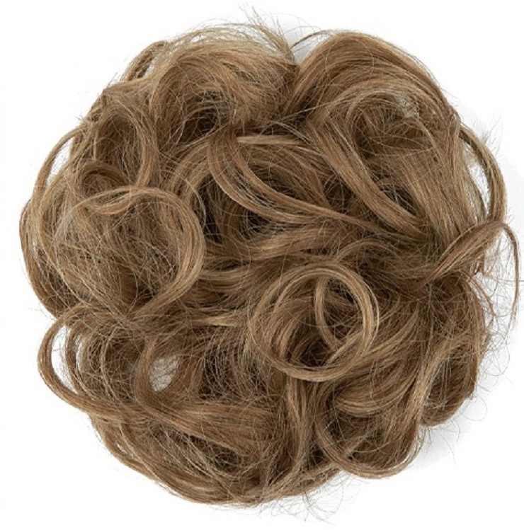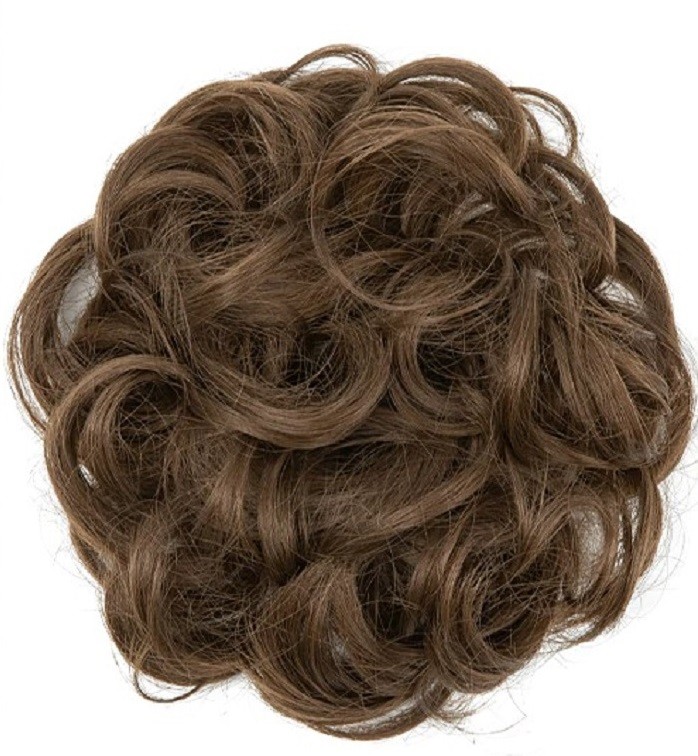 Hairpiece with elastic band. Especially suitable for fine and thinner hair. Natural appearance. Can be washed with shampoo and styled. Your bun will look fuller and thicker. Available in several shades.