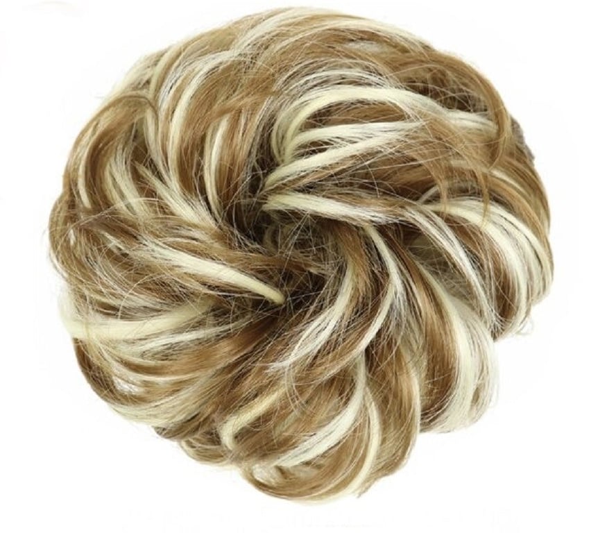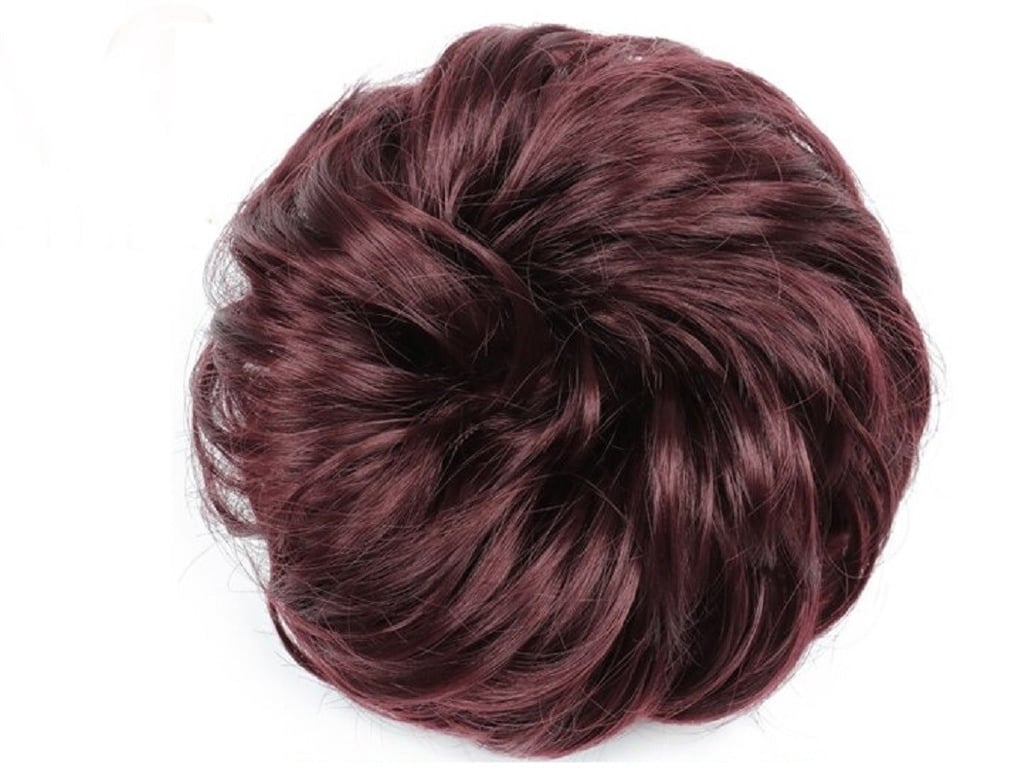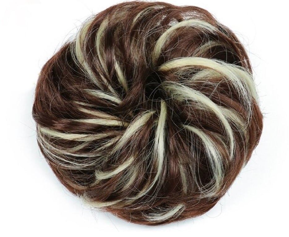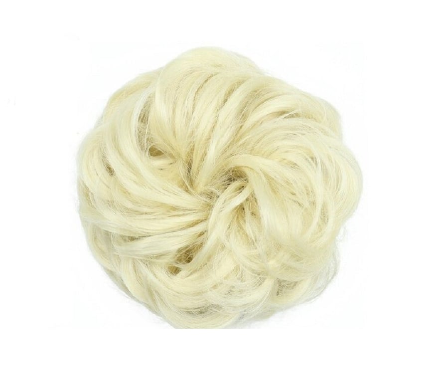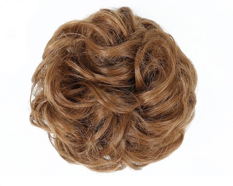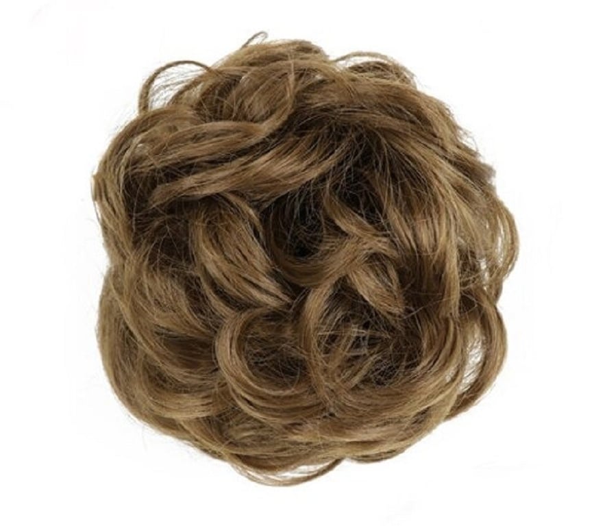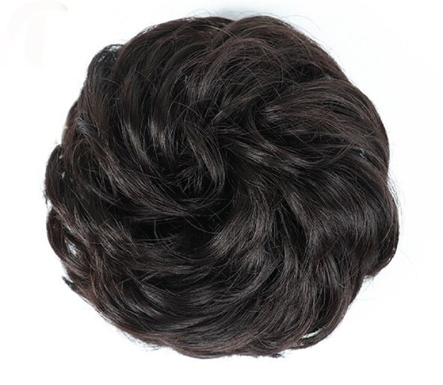 Hairpiece with a hair tie. Especially suitable for fine and thin hair. Natural appearance. Can be washed with shampoo and styled. Your bun will look fuller and thicker. Available in several shades.
