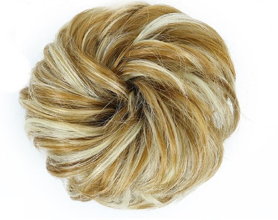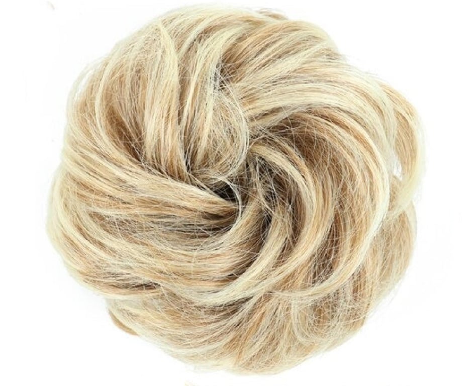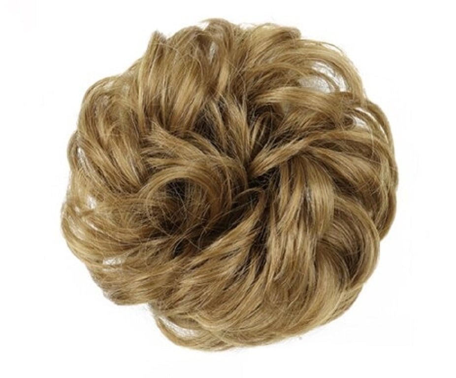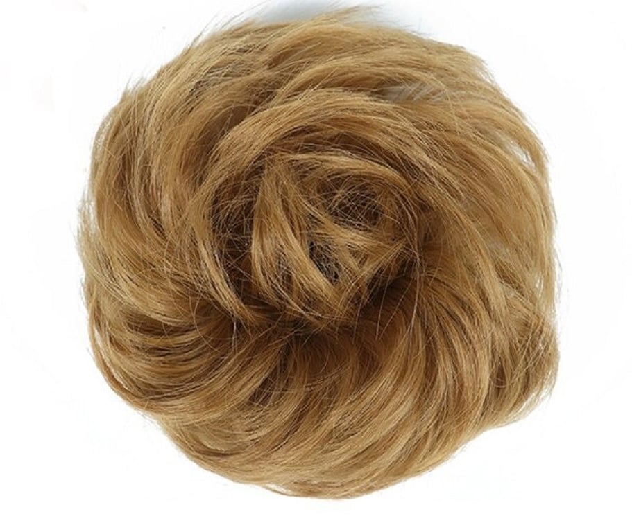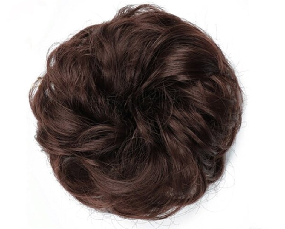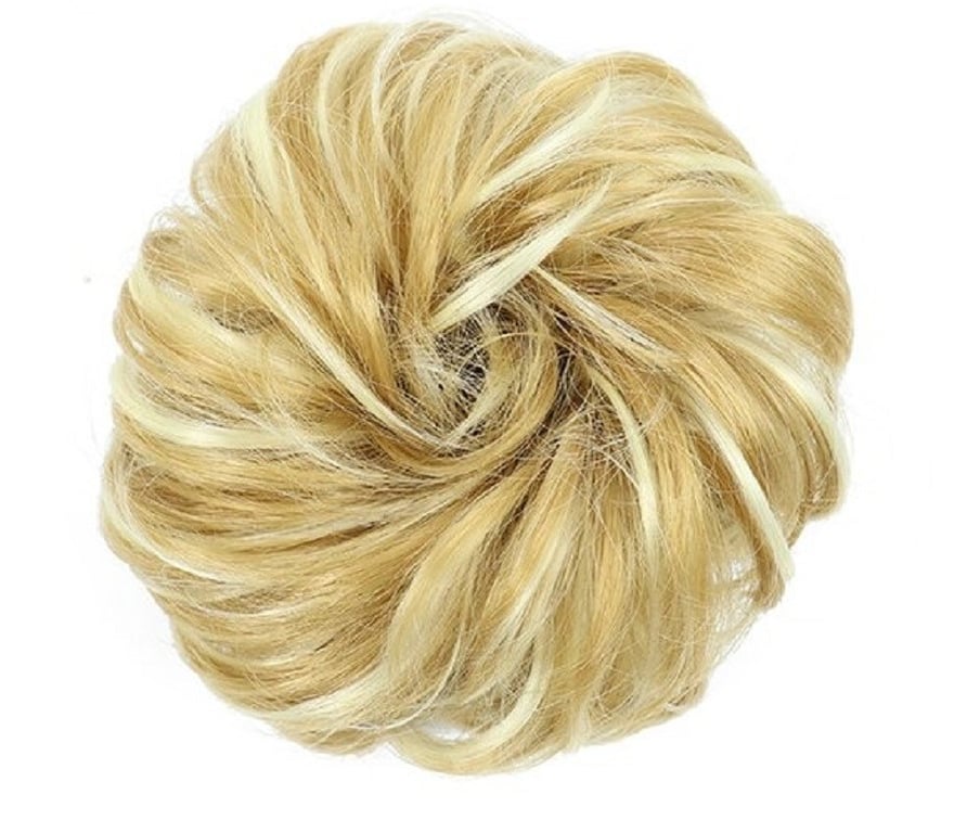Hairpiece with a hair tie. Especially suitable for fine and thin hair. Natural appearance. Can be washed with shampoo and styled. Your bun will look fuller and thicker. Available in several shades.