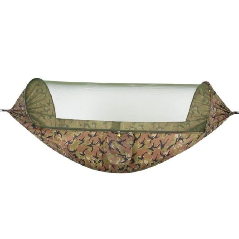 The hammock with mosquito net is a great companion for every passionate traveller. It has a mosquito net, so you can sleep comfortably at night. This hammock easily accommodates two people, allowing you to go on an adventure with your partner. The hammock has a load capacity of up to 200 kg and is made from high-quality material.